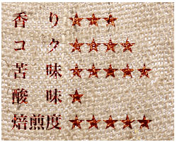 コロンビアをベースにしてグァテマラ、ジャワ、マンデリンの4種配合。苦味をきかしたブレンドです。